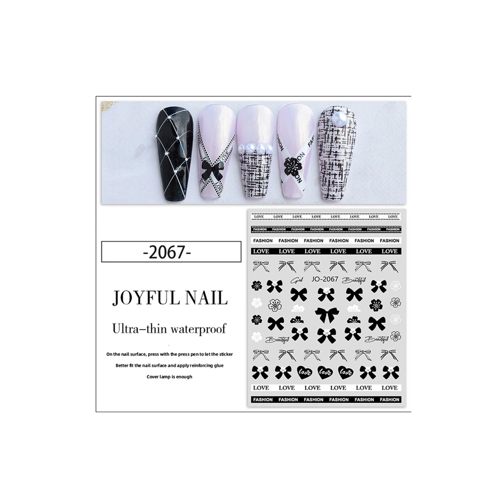 Abtibild Unghii, JO-2067 sunt o optiune excelenta pentru a adauga un plus de creativitate si stil manichiurii tale. Ele sunt disponibile in diferite modele si culori, permitandu-ti sa creezi designuri unice si originale. Abtibildurile de unghii pot fi folosite atat pentru manichiura cu oja semipermanenta, gel UV si oja clasica.