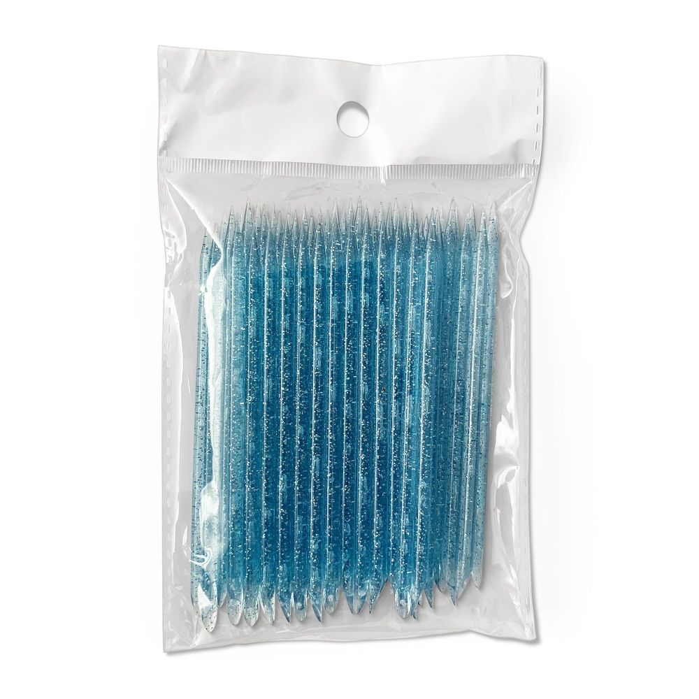 Bete pentru impins cuticula din PVC, Set 100Buc, POC04 sunt foarte interesante, pentru ca au un design interesant, cu sclipici si o nuanta de albastru. In plus, vei avea un numar mare de betisoare, astfel ca, vei avea asigurat stocul pentru o perioada!