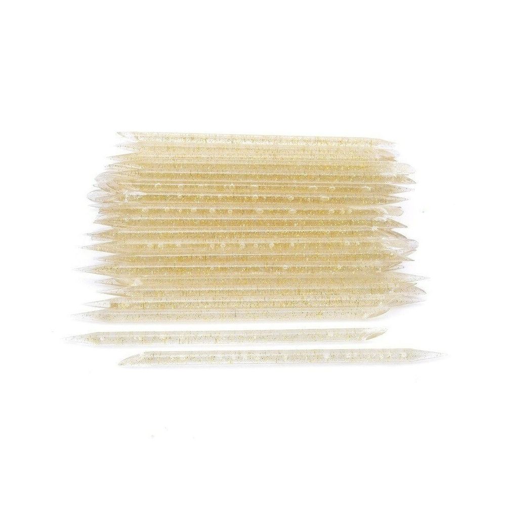 Bete pentru impins cuticula din PVC, Set 100Buc, POC06 sunt foarte interesante, pentru ca au un design interesant, cu sclipici si o nuanta de galben. In plus, vei avea un numar mare de betisoare, astfel ca, vei avea asigurat stocul pentru o perioada!