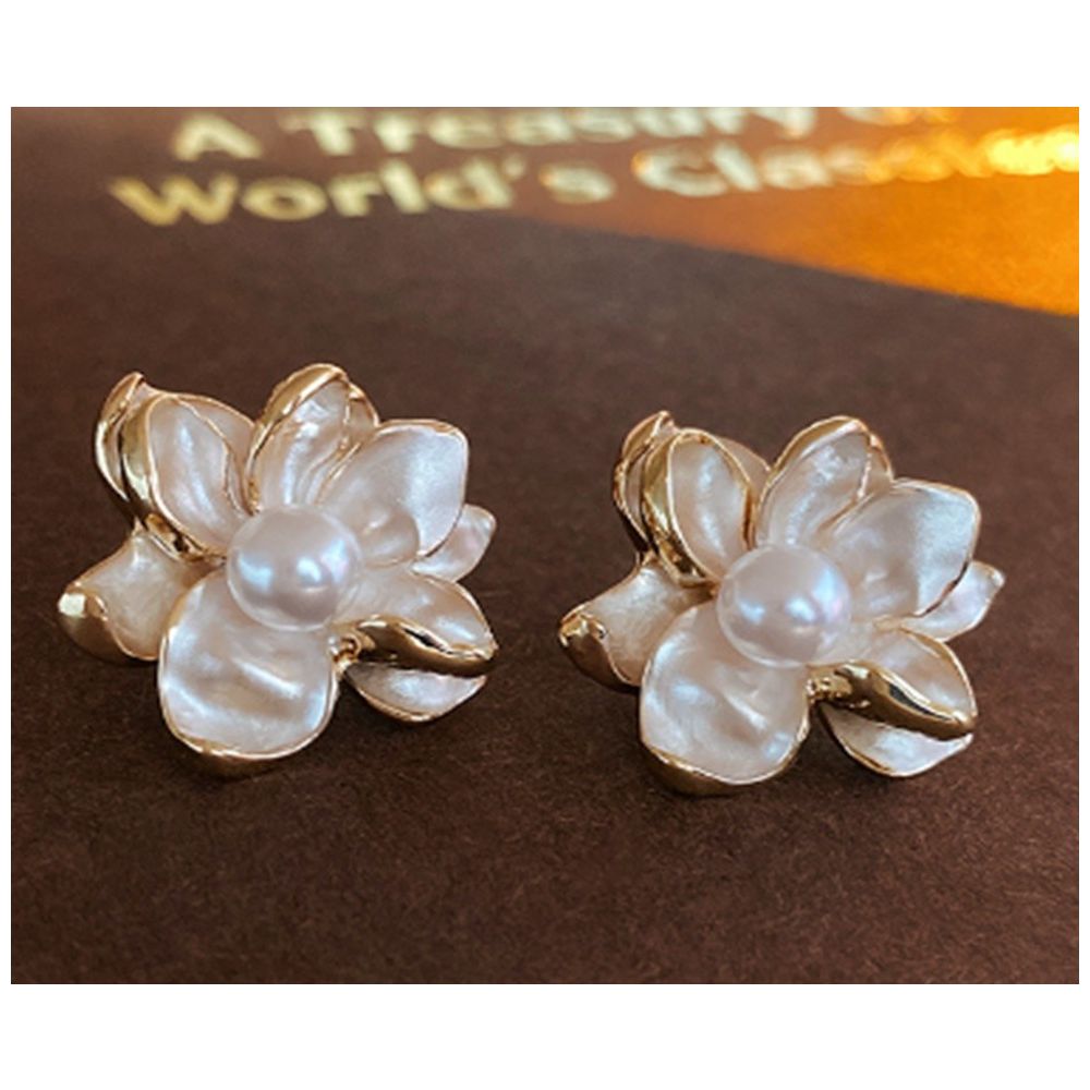 Cercei Aurii Eleganti Model Floare cu Perla