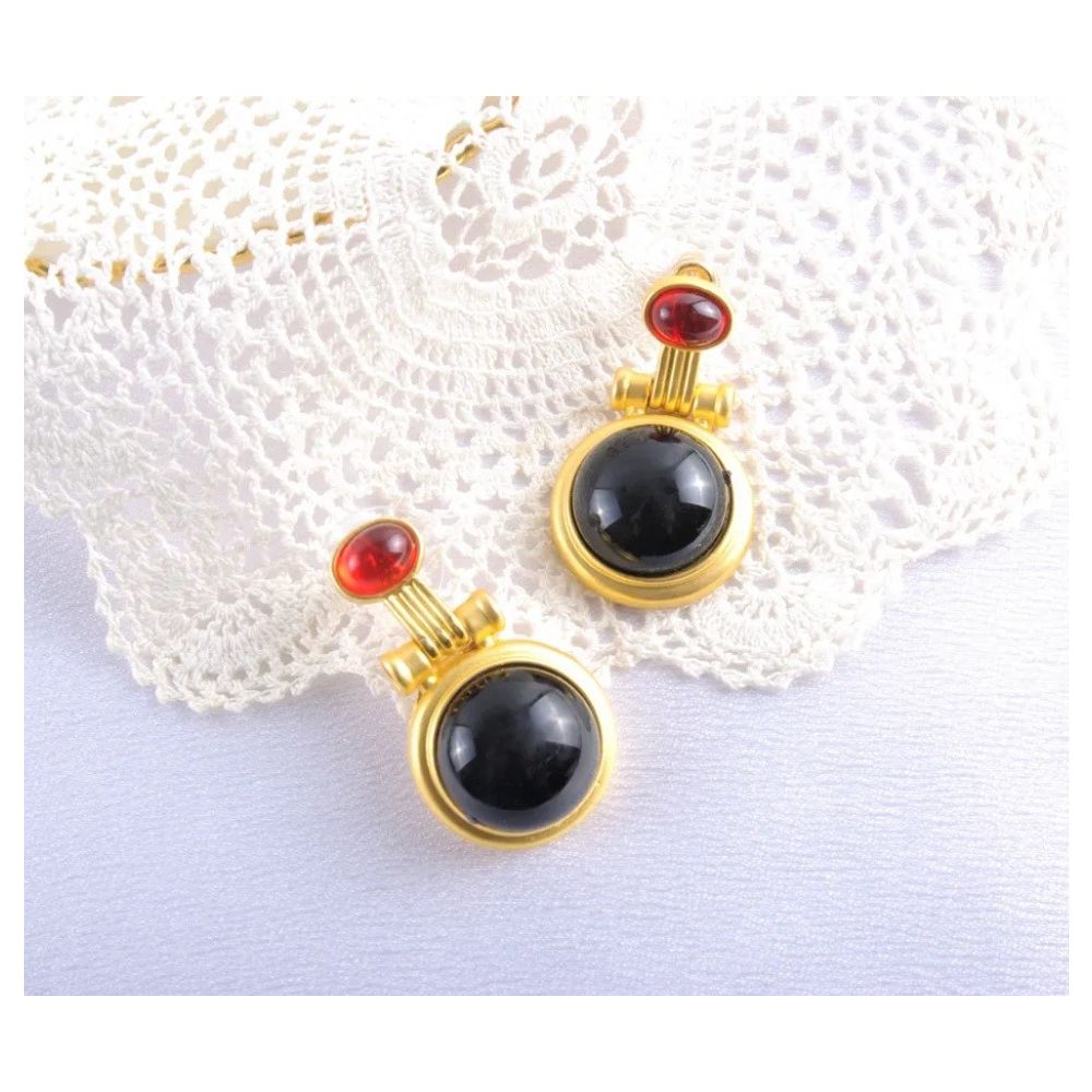 Cercei Aurii Model Elegant cu Perla Neagra
