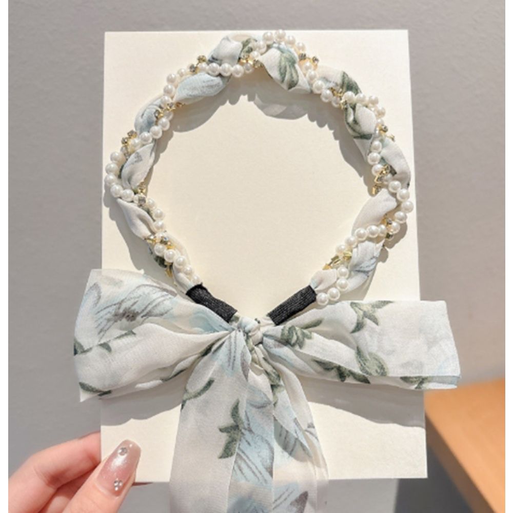 Mai multe informații Cordeluta Bleu pentru Coafat Parul Model Perle cu Panglica