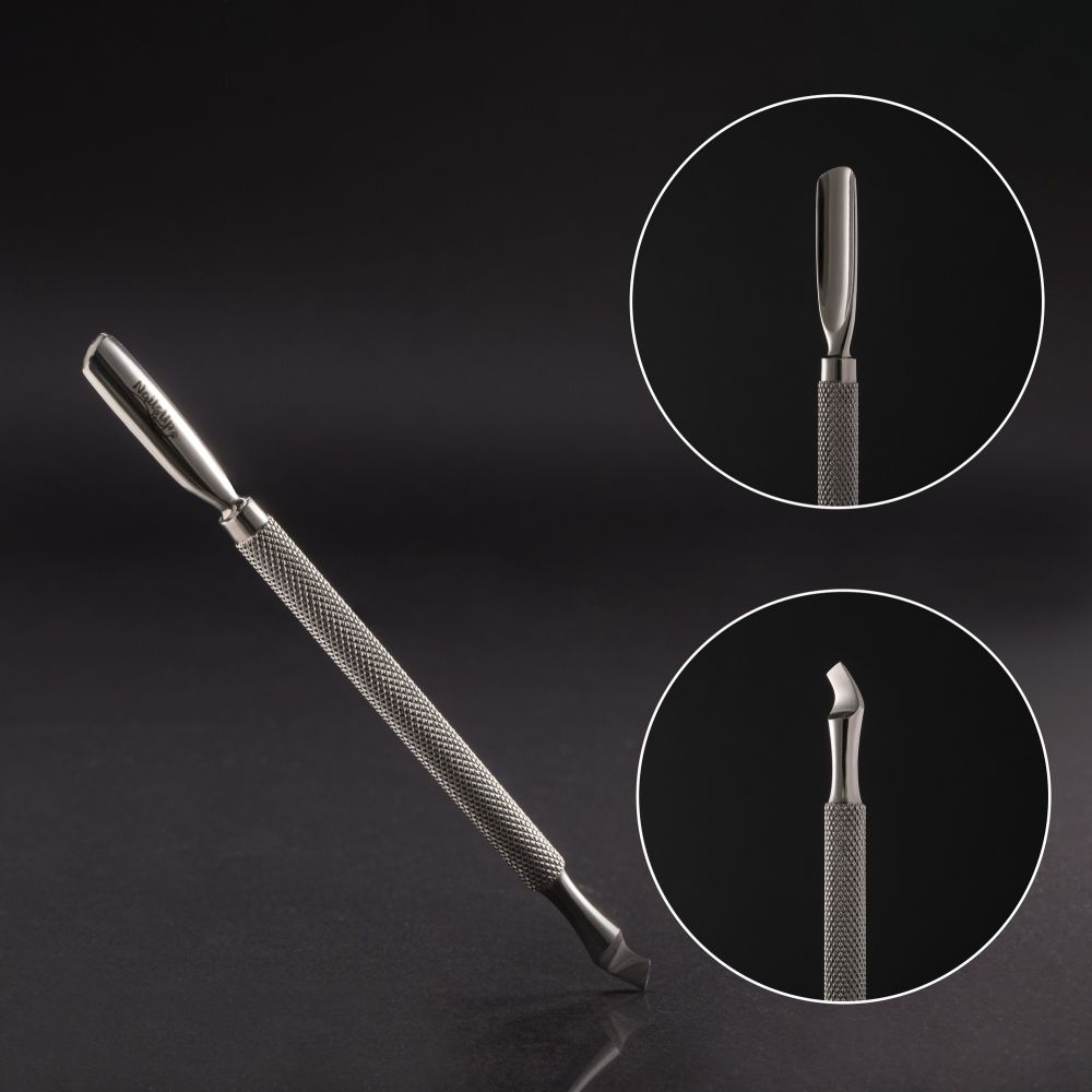 Instrument Manichiura si Pedichiura profesional, NailsUp, Inox, Pro Line, cu două capete, realizat din oțel inoxidabil (inox), este conceput pentru a oferi versatilitate și precizie în îngrijirea unghiilor și a cuticulelor. Acest tip de instrument poate fi folosit de către tehnicieni în manichiură, dar și de către persoanele care își doresc să aibă unghii și mâini bine îngrijite acasă.