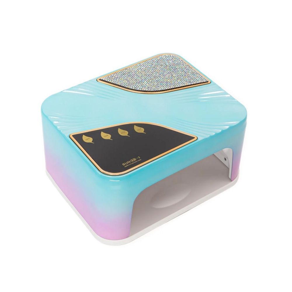 Designul în nuanța Rainbow Blue, împreună cu strasurile, adaugă o notă de lux, transformând acest accesoriu într-o adevărată bijuterie pentru orice spațiu de manichiură. Tehnologia UVLED asigură o uscare eficientă și uniformă, reducând timpul de aplicare și oferind rezultate de lungă durată. SUN AB-3 UVLED este lampa ideală pentru unghii impecabile și o experiență de uscare profesională, aducând eleganță și performanță.