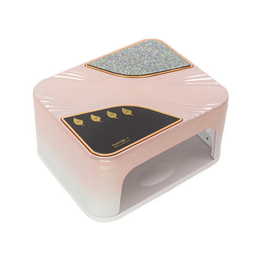 Lampa de unghii UV LED SUN AB-3, cu un design elegant în nuanța roz și ornamente cu strasuri, este un dispozitiv de înaltă performanță, ideal pentru realizarea manichiurilor profesionale sau acasă. Cu o putere mare de 288W, această lampă asigură o uscare rapidă și eficientă a gelurilor UV, ojelor semipermanente și gelurilor de construcție, fiind compatibilă cu o gamă variată de produse pentru unghii.