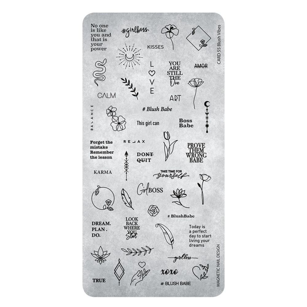 Placa este usor de utilizat si compatibila cu toate tipurile de lac de unghii, facand-o perfecta atat pentru uz profesional, cat si pentru uz casnic. Indiferent daca doriti sa adaugati un pic de stralucire unghiilor sau sa creati o declaratie indrazneata, Matrita unghii metalica, Blush Vibes 55 este instrumentul perfect pentru a va ajuta sa obtineti aspectul dorit.