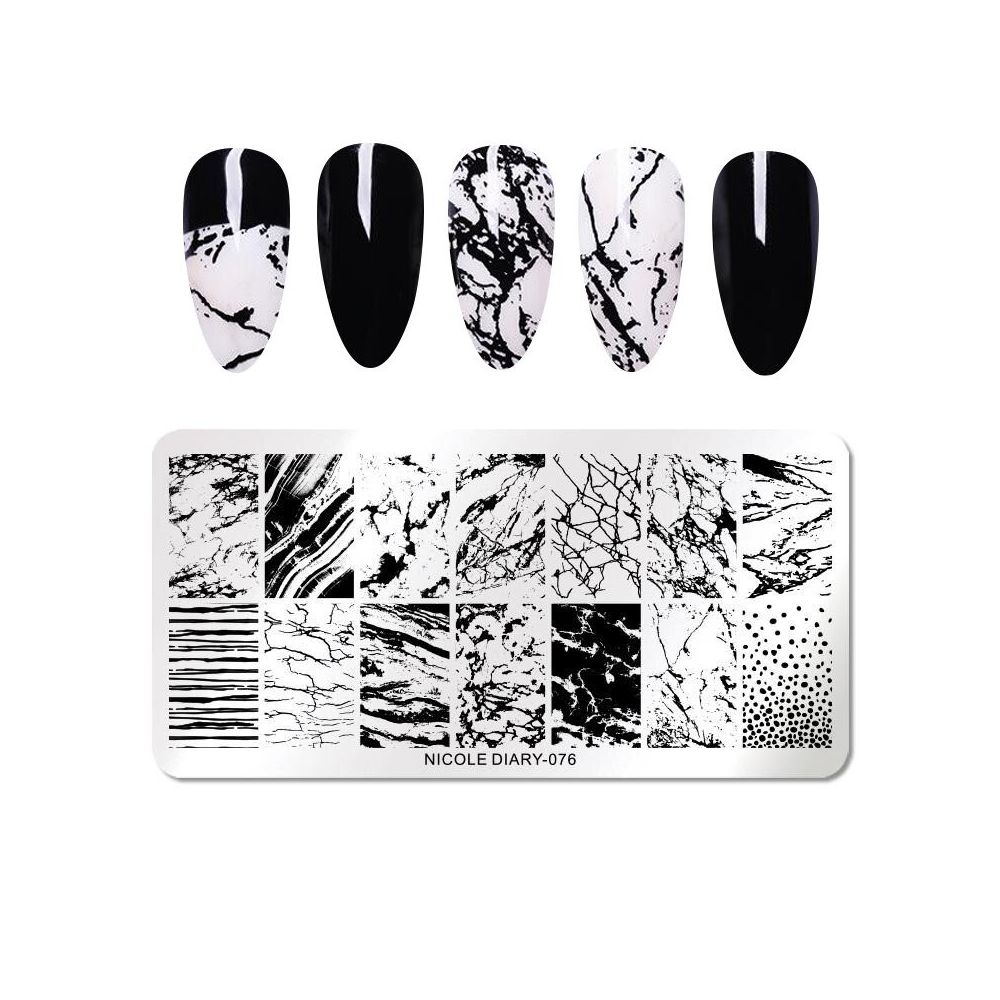 Placa prezinta o varietate de modele metalice, inclusiv forme geometrice, dungi si desene abstracte, permitandu-va sa creati posibilitati infinite de nail art.