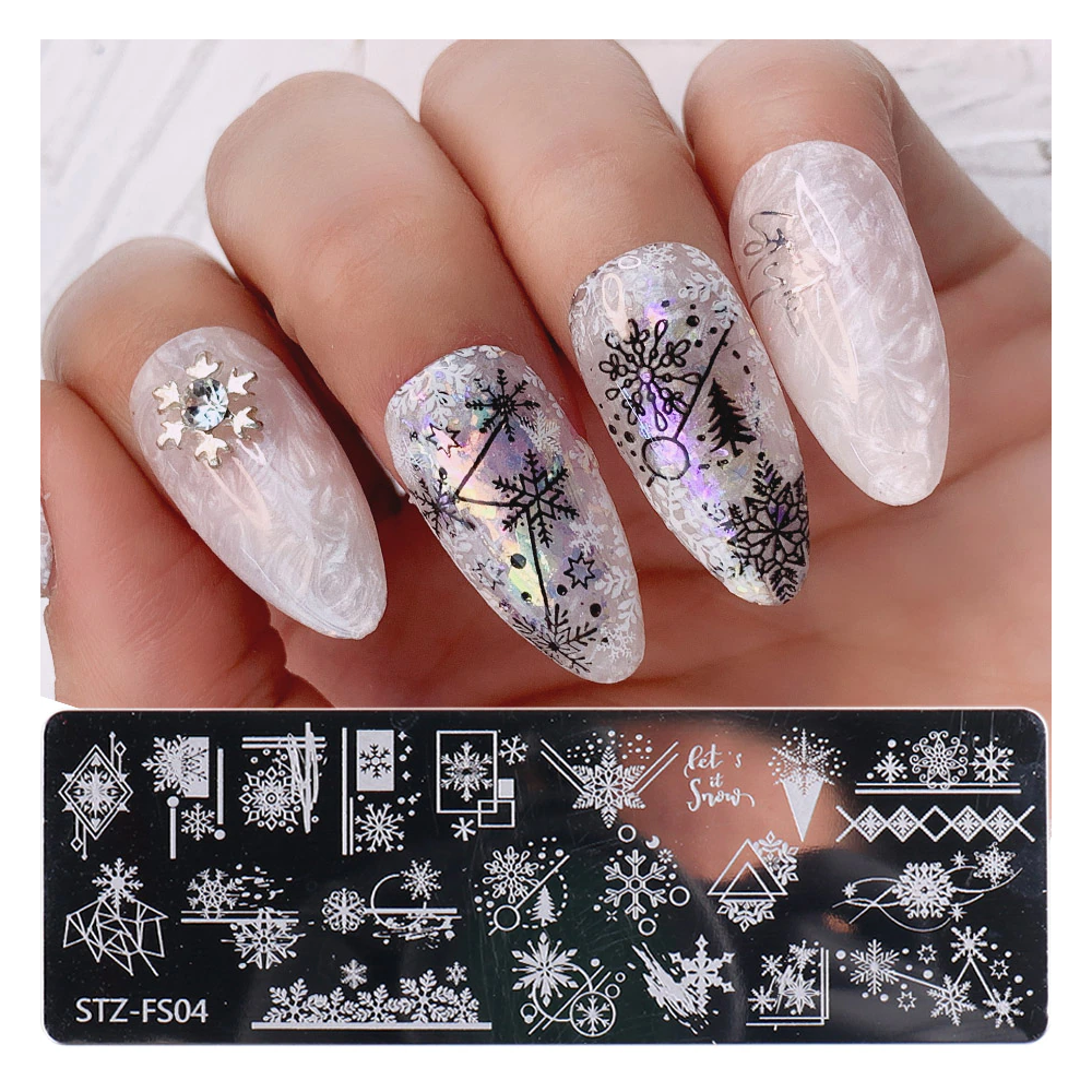 Placa prezinta o varietate de modele metalice, inclusiv forme geometrice, dungi si desene abstracte, permitandu-va sa creati posibilitati infinite de nail art.