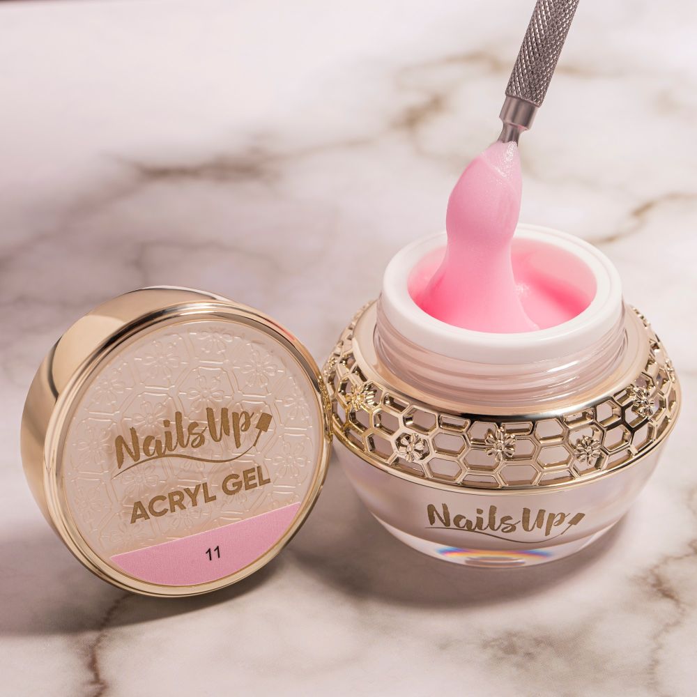 Gel Acryl NailsUp este un produs realizat prin combinarea gelului si a pudrei, avand o buna manipulare in timpul lucrului. Este ideal pentru unghiile care sunt supuse la solicitari, fiind foarte puternic.