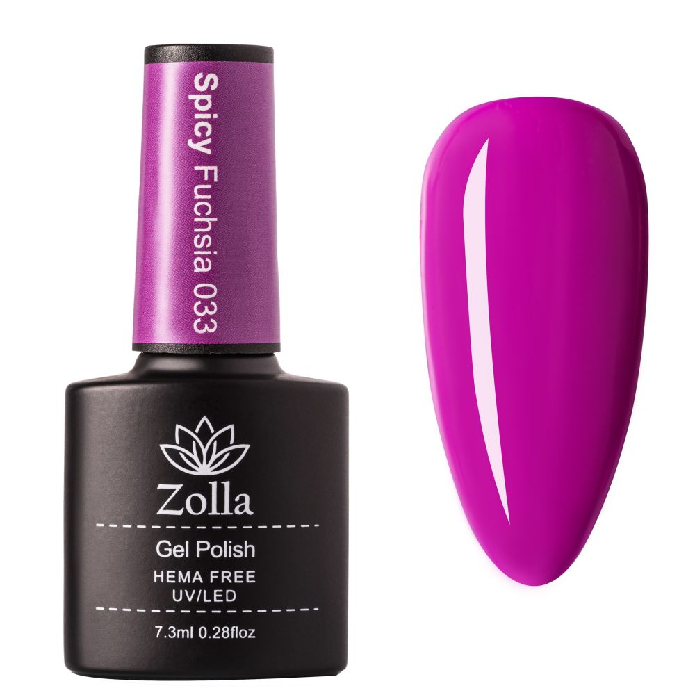 Oja Semipermanenta Zolla Hema Free Spicy Fuchsia 033 este destinata folosirii acesteia, atat in salon, cat si in confortul casei! Datorita ei, vei putea crea unghiute interesante si atragatoare, dintr-o simpla aplicare a ojei!
