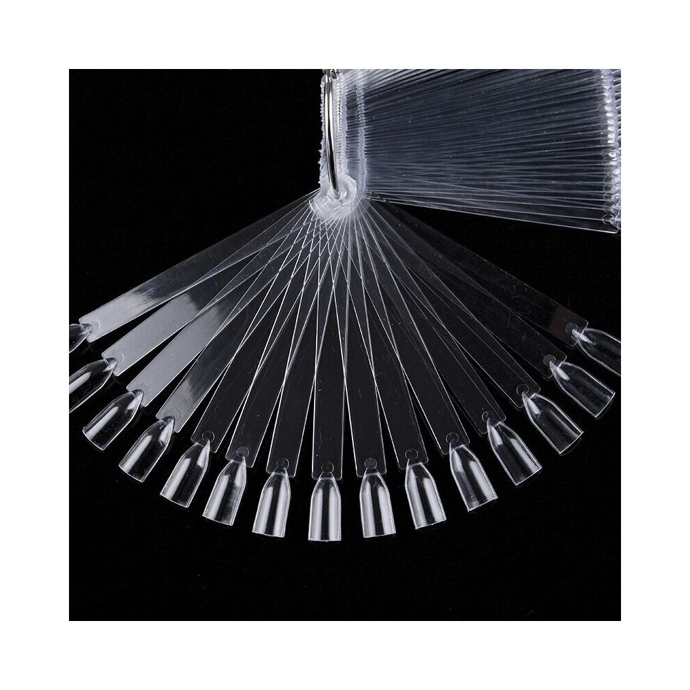 Paletar 50 tipsuri transparente este alegerea ideala daca doresti sa-ti expui diferite modele sau tehnici pe care le-ai realizat, acasa sau in salon. Avand culoare naturala, paletarul iti va permite orice tip de tehnica sau de pictura doresti sa executi pe el, fara a afecta rezulatatul si fara a modifica nuanta aplicata pe tipsul de tip unghie falsa.Format din 50 de tipsuri ce imita perfect unghia tehnica si este confectionat din materiale ce respecta cel mai inalt standard de calitate si rezistenta in timp. Imbunatateste-ti stilul de lucru, invata si exerseaza noi tehnici si bieinteles, suprinde-ti clientele cu modele si manichiuri originale expuse pe paletarul 50 tipsuri . Paletar 50 tipsuri transparente este ideal si pentru culorile ojelor semipermanente sau clasice
