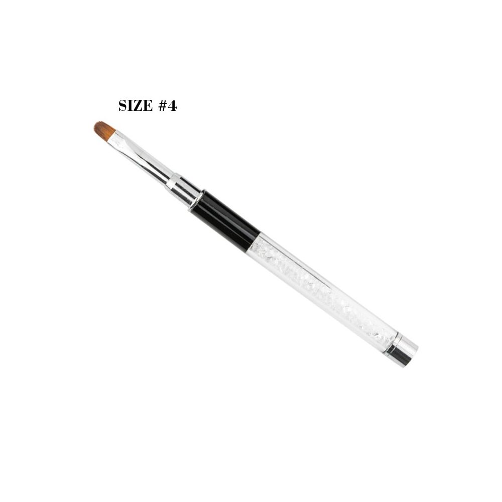 Pensula profesionala pentru aplicarea gelului, forma rotunda sau limba de pisica, cu par sintetic si maner metalic si cristale.
