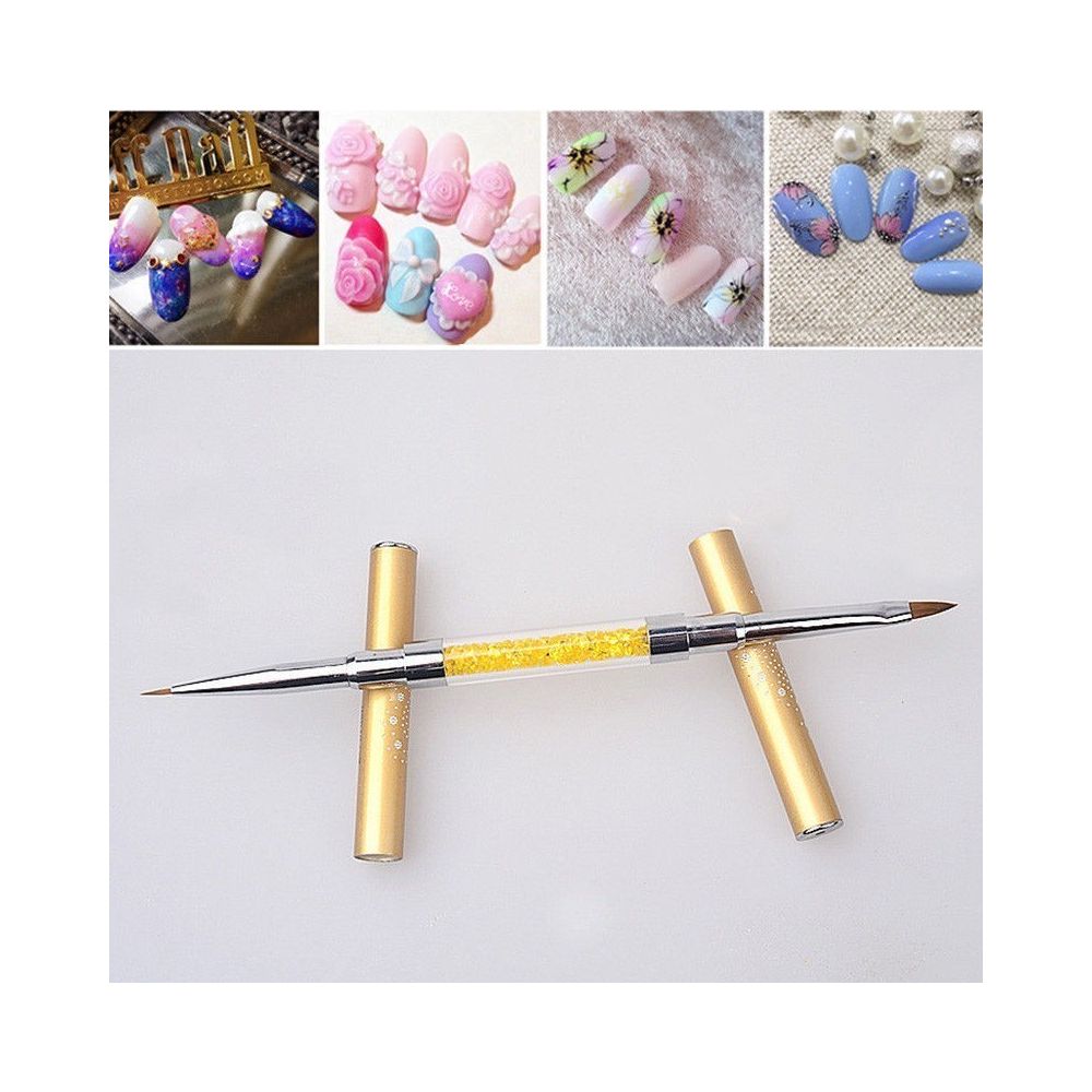 Această pensulă profesională cu două capete este creată pentru a facilita lucrul cu acryl și gel, fiind ideală pentru manichiuri complexe și finisaje precise. Designul său elegant auriu adaugă un plus de rafinament trusei tale de lucru.