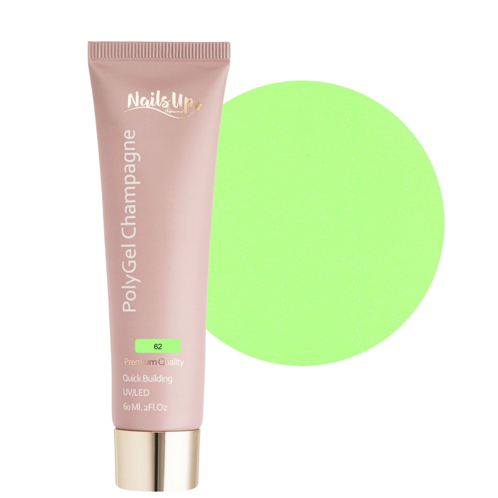 Polygelul Champagne 62 NailsUp se modelează foarte ușor, are o nuanță elegantă și oferă rezistență fără să încarce. Un favorit în salon.