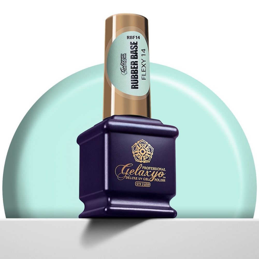 Gelaxyo Rubber Base Flexy - 14 este o bază cu nuanță vernil, cauciucată, pentru oja semipermanentă sau gel UV. Asigură o aderență maximă la unghia naturală, garantând rezistența pe unghii până la 6 săptămâni.