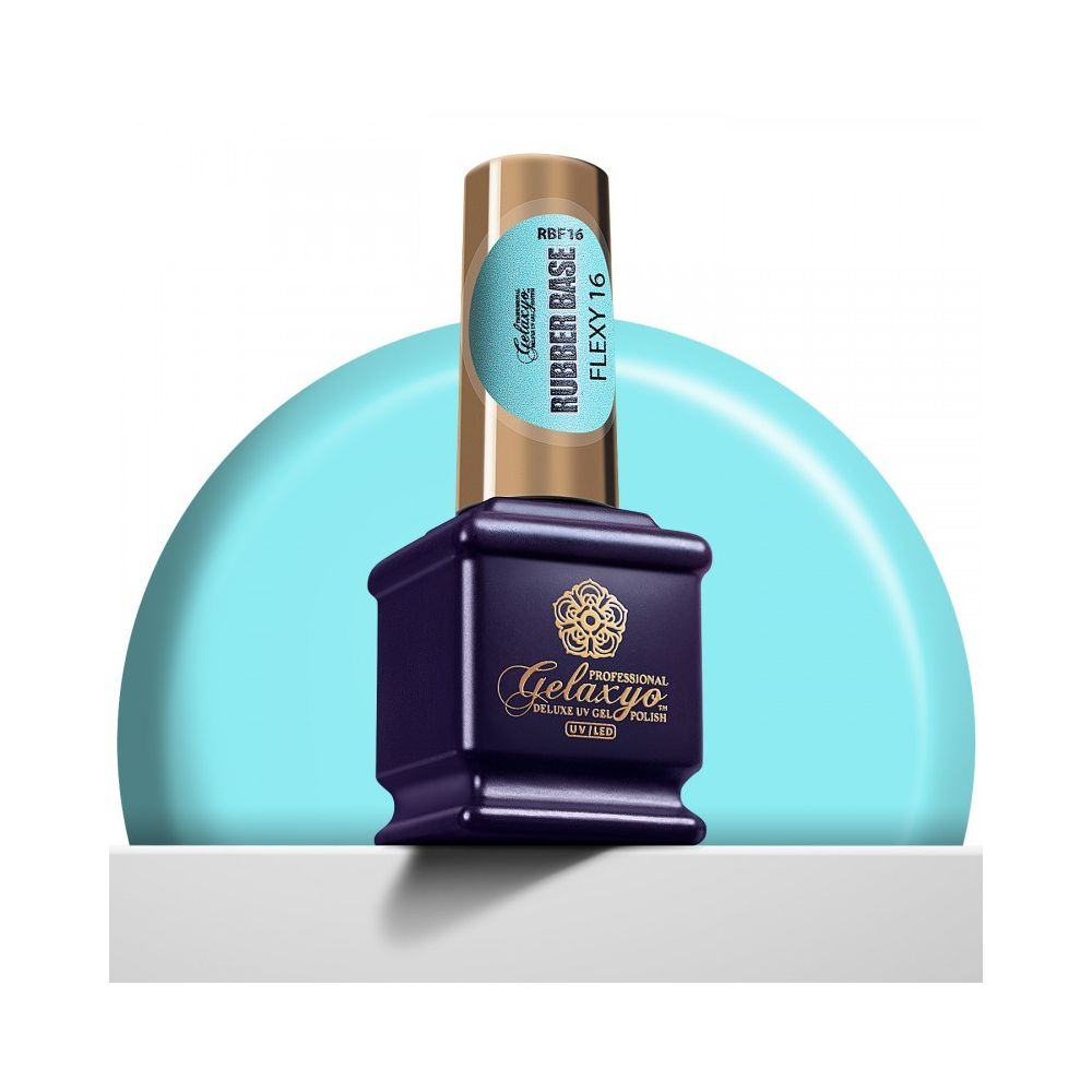 Gelaxyo Rubber Base Flexy - 16 este o bază cu nuanță albastru lăptos, cauciucată, pentru oja semipermanentă sau gel UV. Asigură o aderență maximă la unghia naturală, garantând rezistența pe unghii până la 6 săptămâni.