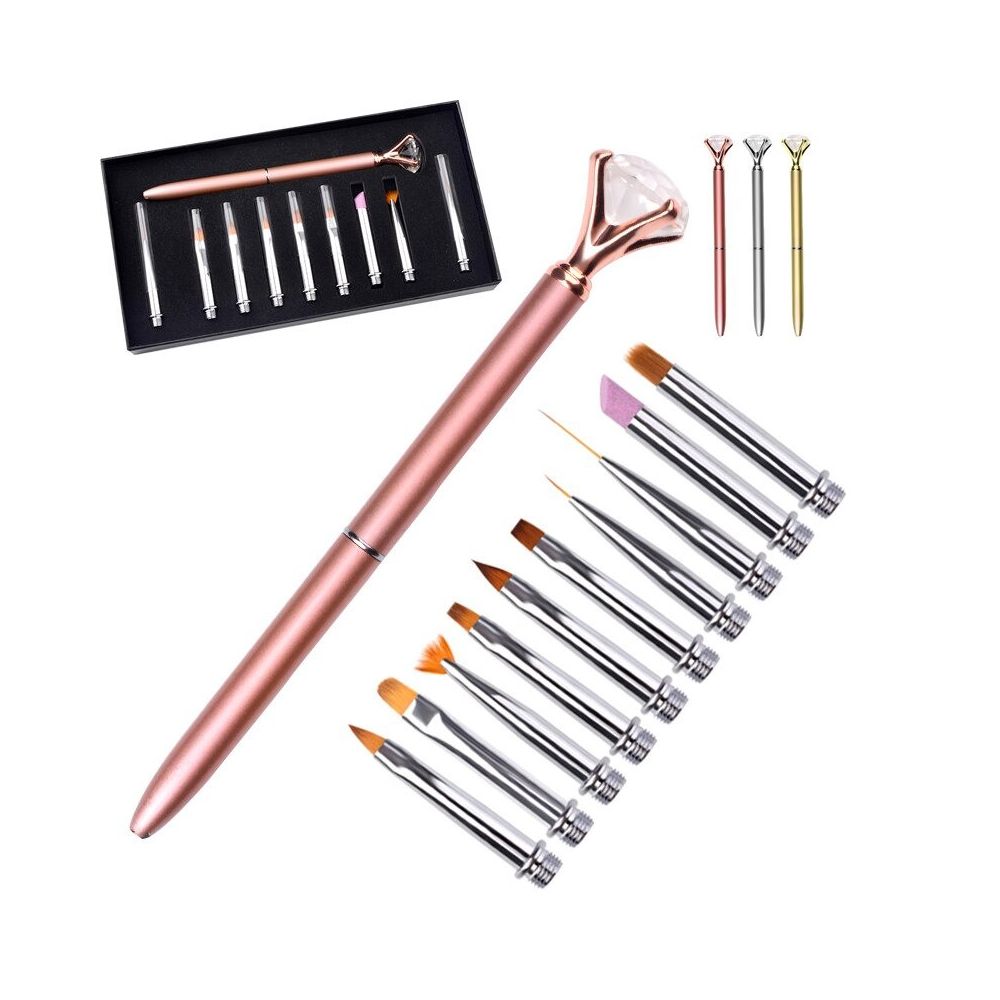 O singura pensula pentru mai multe functionalitati? In magazinul nostru, gasesti Set 10 Pensule Unghii cu rezerve, Cristale,Tip Stilou, Gold Rose! Fiind precum un stilou, poti indeparta capatul cu usurinta si atasa altul cu pensula care trebuie!