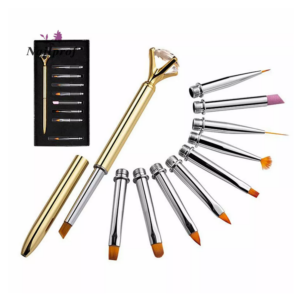 Întrebări despre produs Set 10 Pensule Unghii profesionale cu Cristal, Tip Stilou, Gold