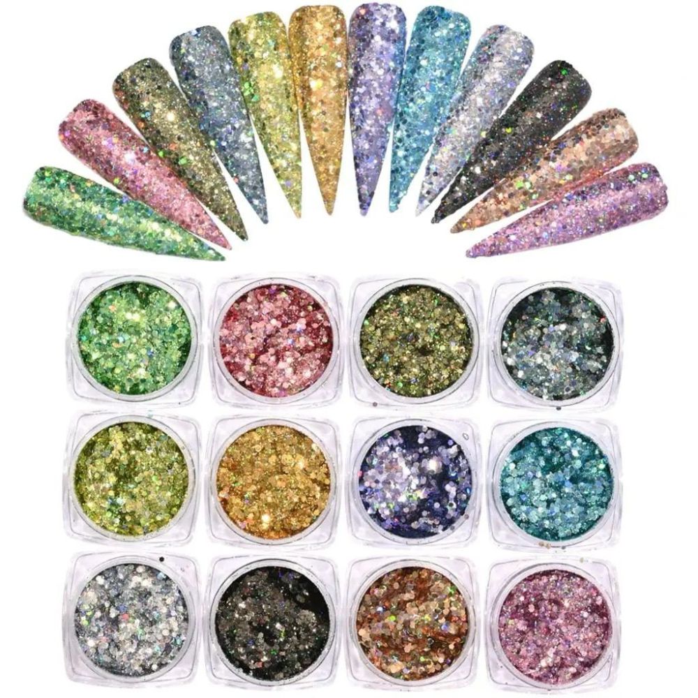 Mai multe informații Set 12 buc Paiete cu sclipici holografic