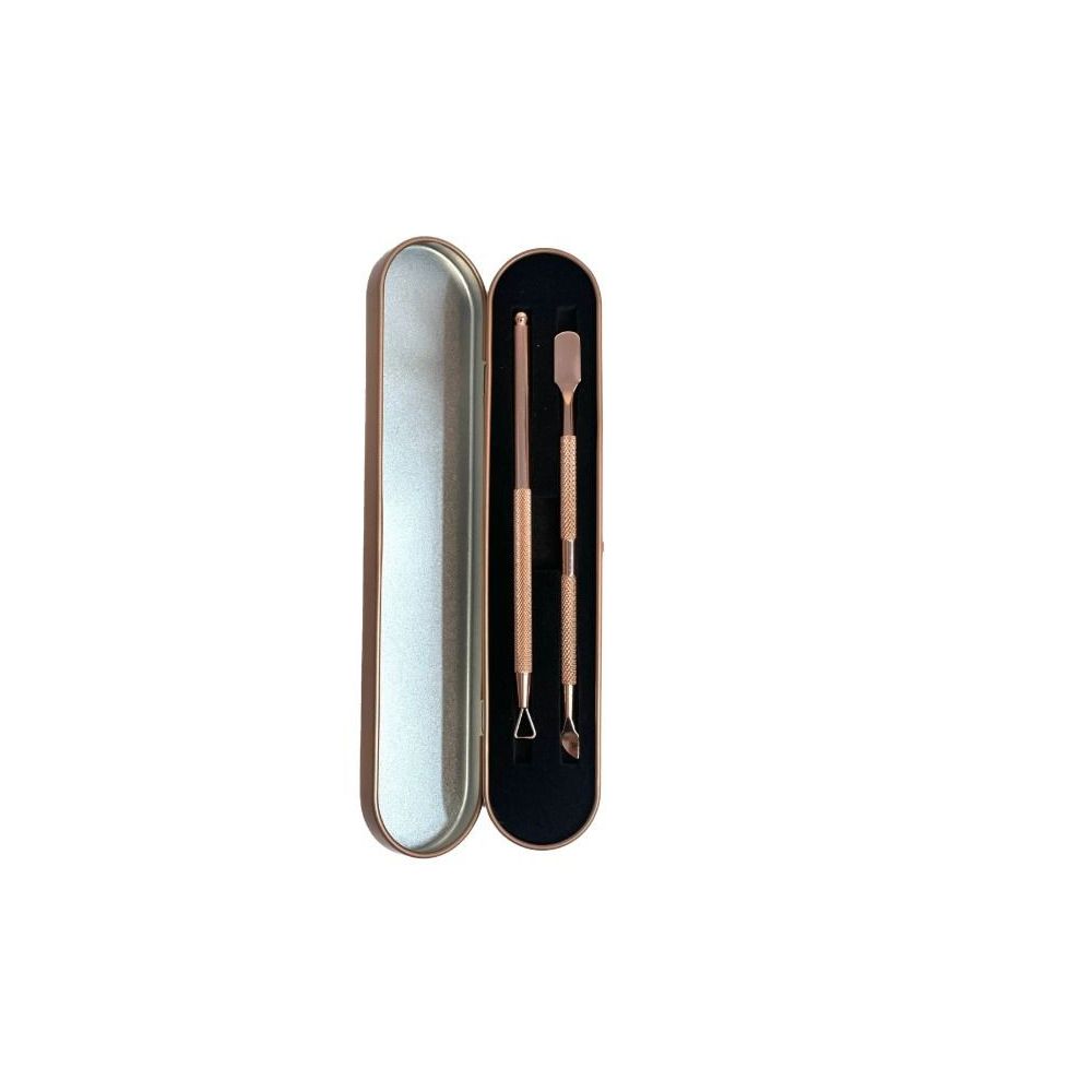 Set 2 Instrumente Gold pentru Manichiura contine o ustensila formata din 2 capete, unul pe care il poti folosi pentru a lua materiale de constructie pentru manichiurile tehnice, din ambalaje si cel de-al doilea pentru impingerea cuticulelor. Cea de-a doua ustensila este pentru formarea designurilor, un capat fiind punctator si celalalt o sarmulita cu care poti indeparta materialele pentru a realiza diverse modele.