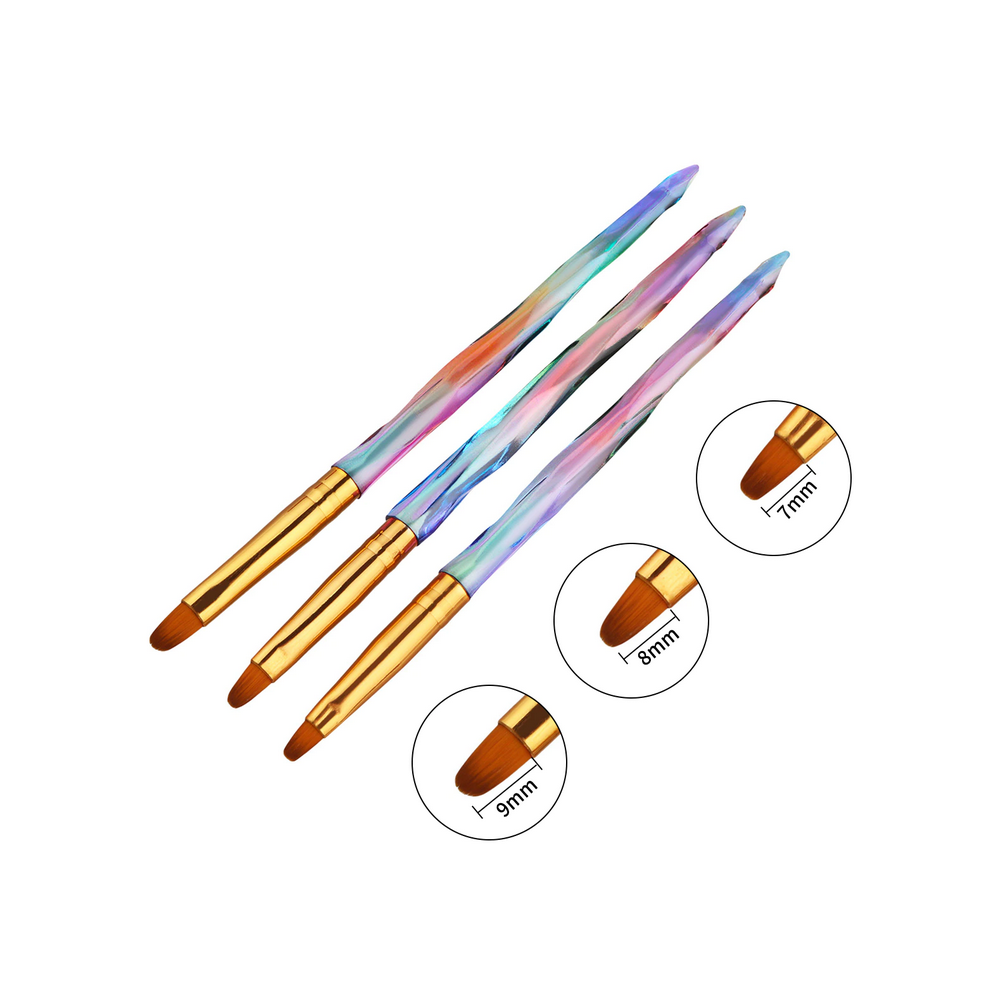In magazinul NailsUp gasiti Set 3 Pensule Limba De Pisica Nr 7,8,9. Acestea sunt perfecte pentru  aplicarea gelului de constructie, dar si a gelului color. Setul  contine  3 Pensule Limba De Pisica Nr 7,8,9 . Sunt pensule practice si pot fi utilizate in salon profesional sau chiar la tine acasa! Set 3 Pensule Limba De Pisica Nr 7,8,9 au un  design modern tip unicorn. Set 3 Pensule Limba De Pisica Nr 7,8,9 te vor ajuta sa aplici cu usurinta cantitatea de gel dorita pe intreaga suprafara a unghiei!