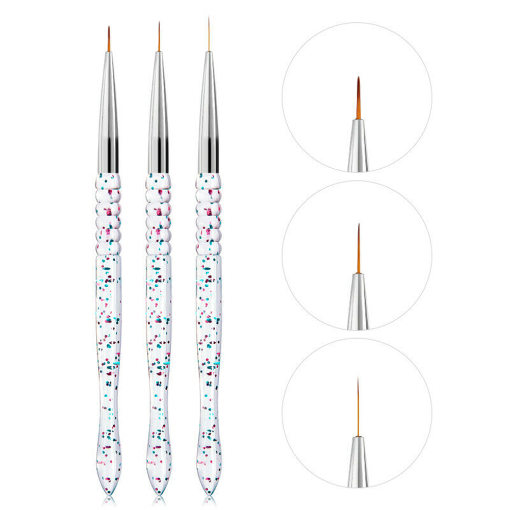 Setul 3 Pensule Manichiura Unghii False contine instrumente foarte subtiri si rezistente, de lungimi diferite, ideale pentru trasarea de linii si detalii foarte fine.