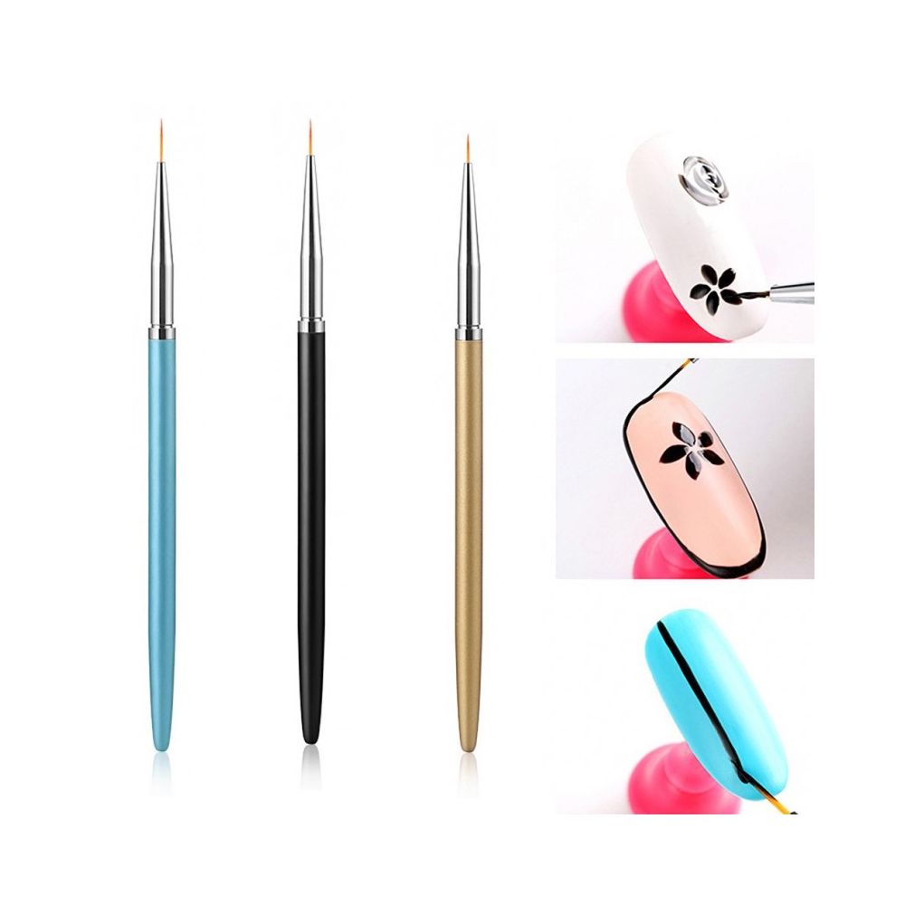 2. Variatie in dimensiuni: Setul contine 3 pensule cu dimensiuni diferite ale varfurilor, oferind optiuni multiple pentru a crea diferite grosimi de linii si forme pe unghii.