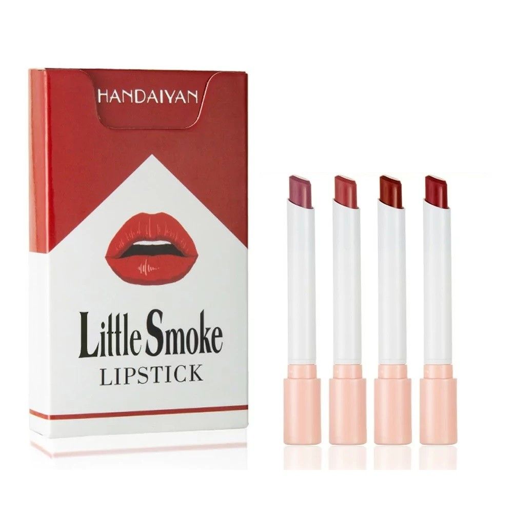 Vrei sa achizitionezi rujuri care iti hidrateaza buzele, dar au si un design unic si amuzant? NailsUp iti recomanda Set 4 Rujuri Tip Tigara, Matte. In plus, aceste rujuri sunt realizate pentru a fi rezistente la apa. Ai la dispozitie 4 culori pe care le poti utiliza, fiecare fiind ambalat cu designul unei tigari, iar acest set este integrat intr-o cutie asemanatoare unui pachet de tigari.
