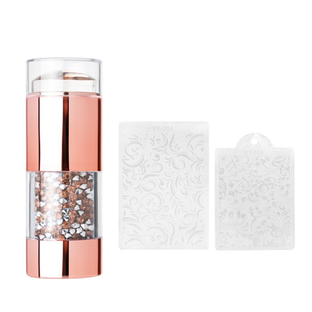 Stampila Dubla Cristale - Gold este un instrument deosebit utilizat in domeniul manichiurii pentru a crea designuri de unghii impresionante si sofisticate. Aceasta stampila este conceputa pentru a aplica modele complicate si detalii fine pe unghii, intr-un mod usor si precis.