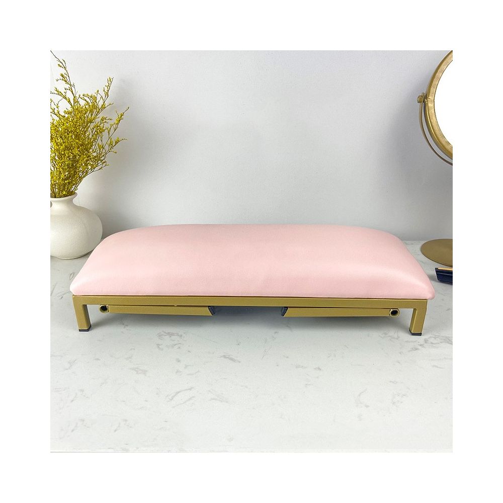 Suport de mana manichiura cu detalii aurii si piele Roz