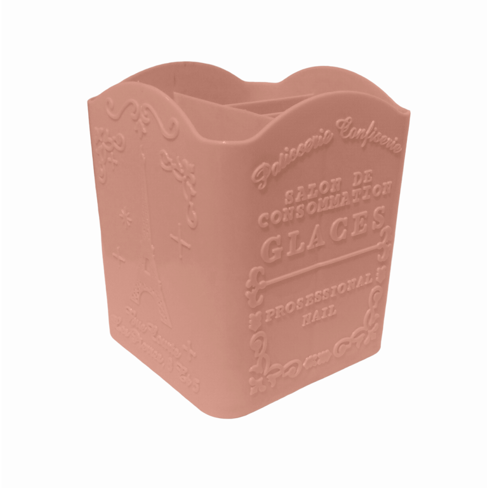 Suport ustensile manichiura pahar - Piersica este un accesoriu practic si estetic destinat organizarii si depozitarii ustensilelor si accesoriilor folosite in procesul de manichiura. Acest suport nu doar indeplineste o functie utila, ci adauga si un strop de culoare si eleganta pe masa de lucru.