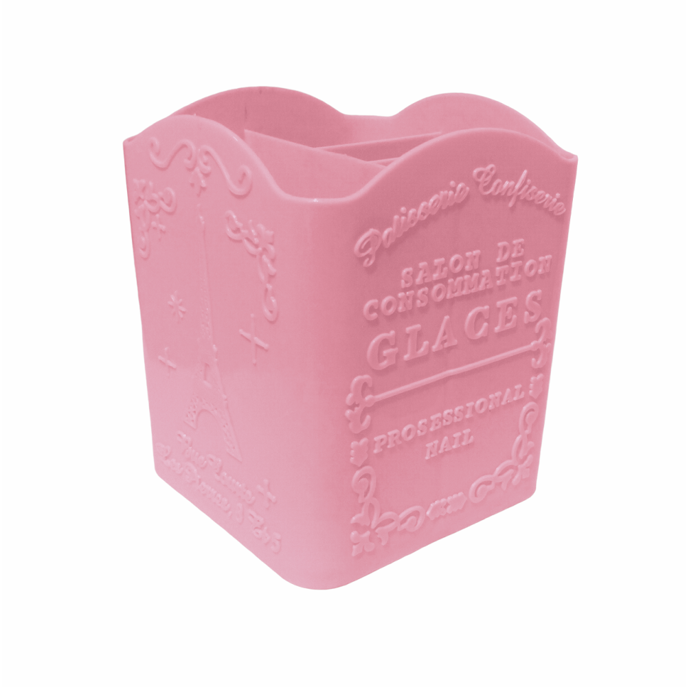 Suport ustensile manichiura pahar - Roz este un accesoriu practic si estetic destinat organizarii si depozitarii ustensilelor si accesoriilor folosite in procesul de manichiura. Acest suport nu doar indeplineste o functie utila, ci adauga si un strop de culoare si eleganta pe masa de lucru.